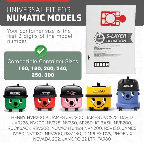 IBBAH Henry Hoover Bags 10 Pack | 5-Layer Henry Vacuum Bags | HEPA-Flo Numatic Bags | Compatible With |Henry | Hetty |Numatic Vacuum Cleaners | NVM-1B/NVM-1C/NVM1C2 | XL, Xtra