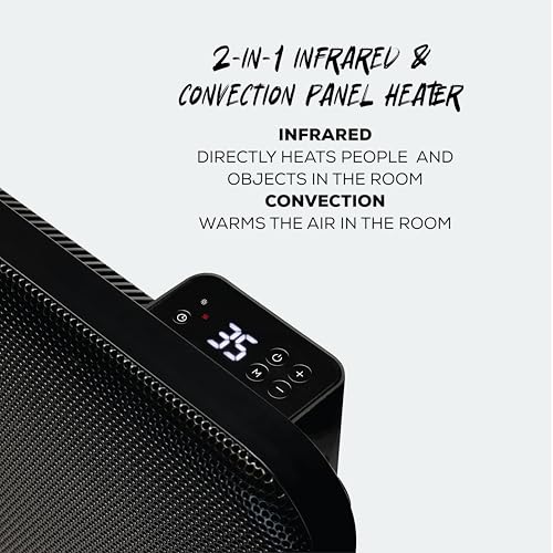 TCP 2000W 2-in-1 Convection and Infrared Panel Heater Black, Fast Heating, Slim Design, Digital Thermostat, 24 Hour Timer, Weekly Programming, Quiet Operation, Wall Mounted or Freestanding