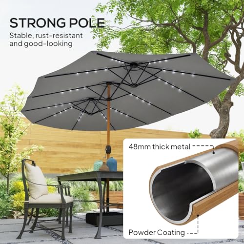 Outsunny Double Sided Garden Parasol w/ 48 Solar LED Lights 4.6m Light Grey