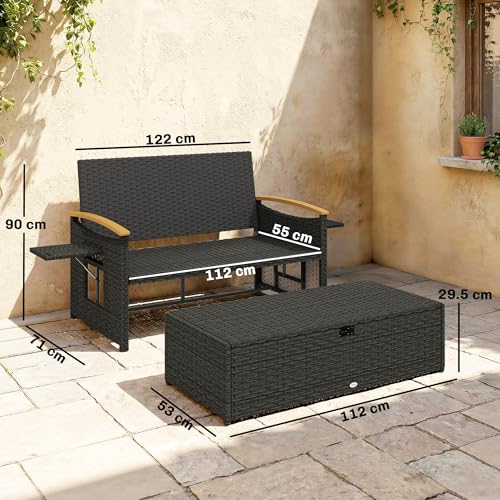 OUTSUNNY Double Garden Rattan Daybed with Storage Ottoman, Dark Grey Size: 120 cm x 70 cm Dark Grey 120 cm x 70 cm