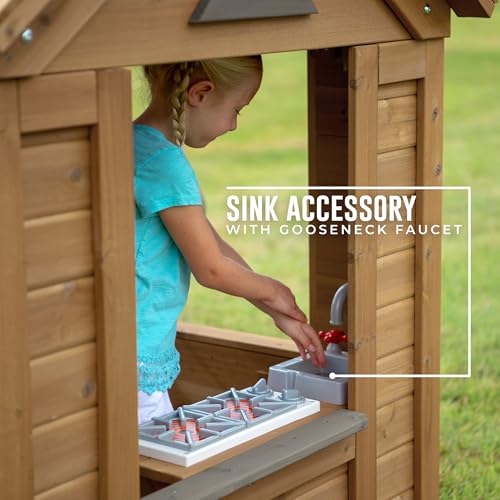 Backyard Discovery Maple Leaf Cedar Wooden Childrens Playhouse with Play Kitchen, Snack Bar Window, and Half Door