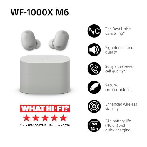Sony WF-1000XM6 Flagship Wireless Noise Cancelling Earbuds, Bluetooth, In-ear Headphones, Signature Hi-Res Sound, Clear Calls, 10 band EQ, 24 Hr Battery NC On, IPX4, iOS & Android - Platinum Silver