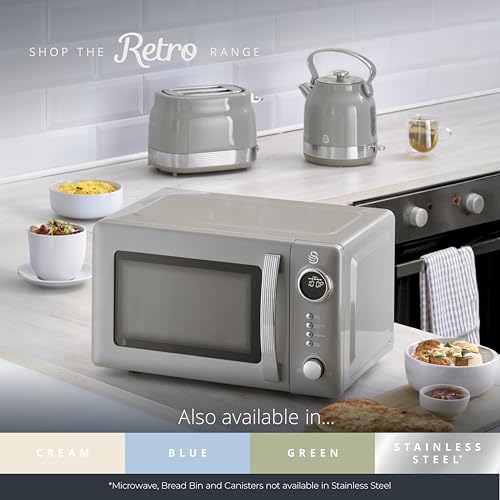 Swan Retro Revive Microwave Grey 800W Digital 20L Countertop Design -SM4425GRY