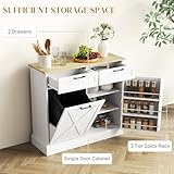 HOMCOM Sideboard with Trash Bin, Farmhouse Kitchen Sideboard with 2 Drawers in White White