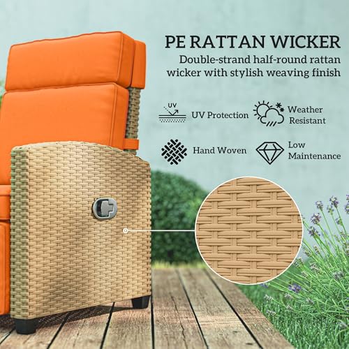 Outsunny Rattan Garden Recliner Chair, Adjustable Backrest Reclining Rattan Chair with Flip Table, Cushion and Footrest, Indoor Outdoor Lounge Reclining Sun Lounger for Patio, Khaki/Orange