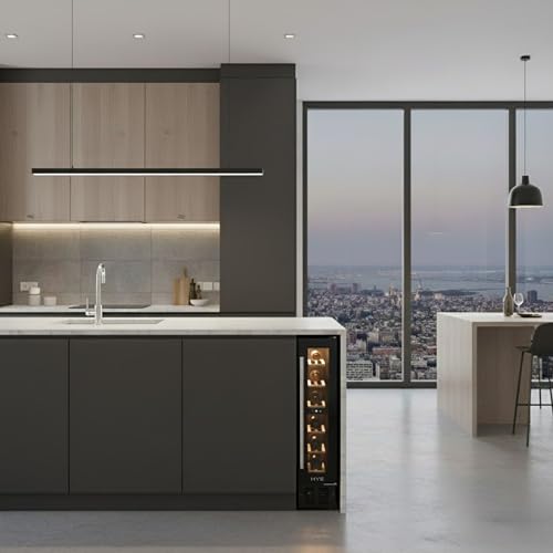 HYE Wine Cooler 7 Bottle Under Counter 15cm Slim, 22L Touch Controls LED Display