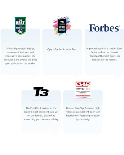 HUAWEI FreeClip 2 Open-Ear Headphones, Clip-On Wireless Earbuds, 5.1g Lightweight, IP57 Waterproof, 38H Battery, Bluetooth 6.0, 3-Mic Noise Cancellation, Wireless Charging, Blue