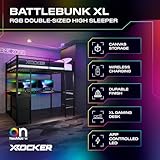 X Rocker Battlebunk XL RGB LED Double High Sleeper Gaming Bunk Bed with Desk in Black Black Double