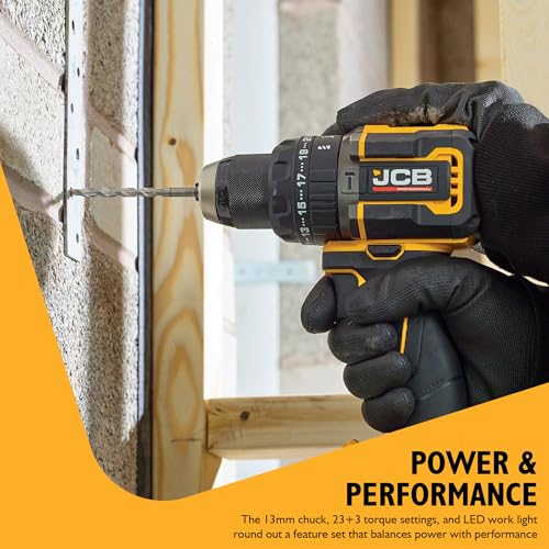 JCB 18V Pro Brushless Twin Pack - Combi Drill (75Nm) & Impact Driver (230Nm) Kit - Includes 2X 2.0Ah Batteries, 4.5A Fast Charger & Heavy Duty Case - Cordless Power Tool Set - 3 Year Warranty
