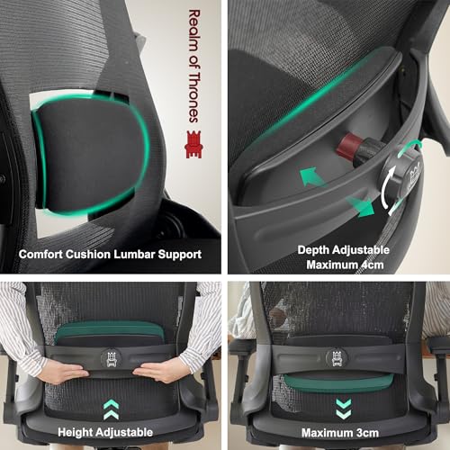 Realm of Thrones VALOUR Ergonomic Office Chair for Home, Gaming Desk Chair, 3D Headrest/High Back Mesh/Comfort Cushion Seat/2D Rotating Armrests/Adjustable Lumbar Support/Heavy Duty Steel Base (Black)