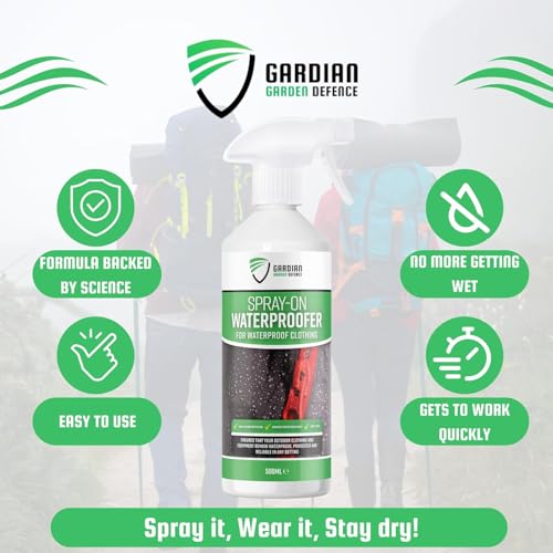 Gardian Defence Waterproofing Spray for Jackets and Outdoor Clothing - 500ml Heavy-Duty Waterproof Spray for Fabric, Coats, Rain Gear, and Tents - Rain Repellent
