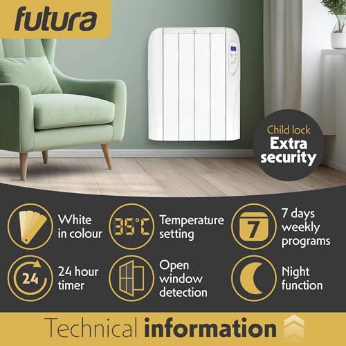 ‎Digital LED Display, Eco Auto Open Window Detection, Splash Proof IP24 Rated, 24/7 Timer, 3x Heating Modes, 9x Editable Preset Programmes