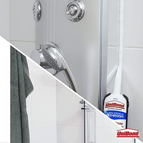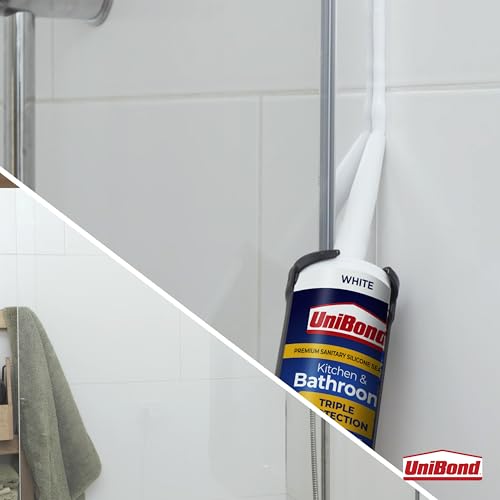 UniBond 2100806 Triple Protection Stop Mould Sealant, Kitchen & Bathroom Sealant, White Silicone Sealant Repels, Kills, Prevents Mould Growth, Long-Lasting Bath Sealant, 1x291g Cartridge