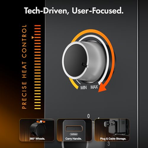 Auto Thermal Cut Off, 3 Heat Settings, Adjustable Thermostat, Tip Over Protection, Wheels, 1.5m Cable, 9 Fins, Energy Efficient