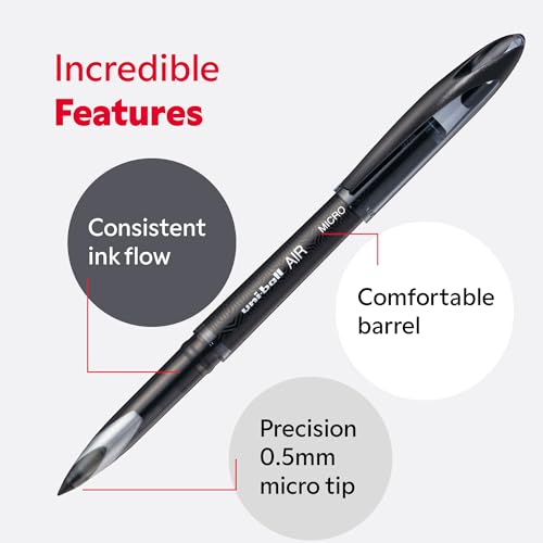 uni-ball - Air, Micro Nib, Black Liquid Ink Rollerball Pens (12pc Set) - Smooth, Comfortable, Long Lasting, Japanese Quality, for School, Work, Office, Study, Teacher, Notes, Journal, Gift