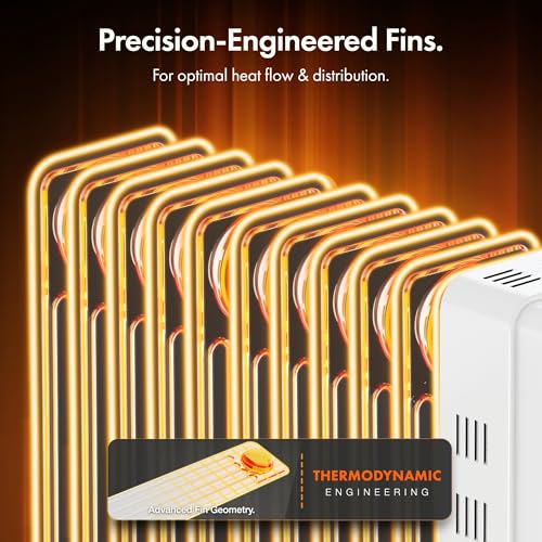 24 Hour Timer, Auto Thermal Cut Off, 3 Heat Settings, Adjustable Thermostat, Tip Over Protection, Wheels, 1.5m Cable, 11 Fins, Energy Efficient