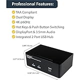 StarTech.com 2-Port DisplayPort KVM Switch - Dual-Monitor - 4K 60 - with Audio & USB Peripheral Support - DP 1.2 - USB Hub , TAA (SV231DPDDUA2)