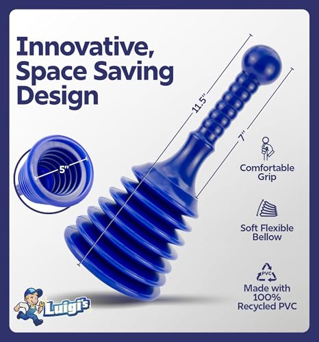 Luigi's Plunger for Sinks and Drains - Sink Plunger for Bathrooms Kitchens Sinks Baths and Showers Unblocker - Shower Plungers for Unblocking - with Large Bellows