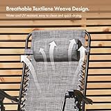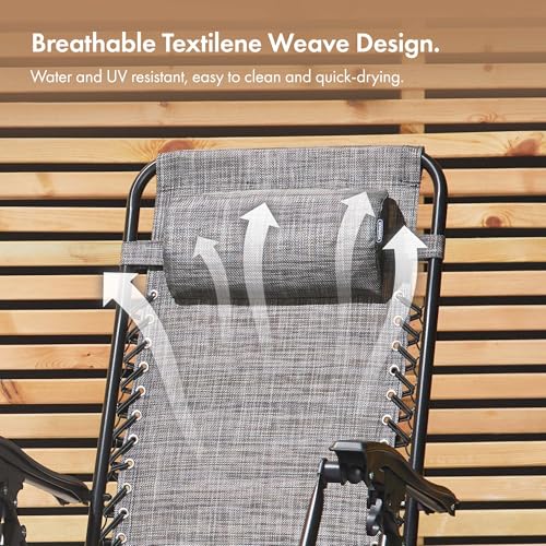 VonHaus Zero Gravity Chairs with Canopy Set of 2 - Grey Reclining Sun Loungers for Garden - Textilene Folding Sunloungers with Adjustable Sun Shade - 2 Set Deck Chairs for Outdoor, Patio & Decking