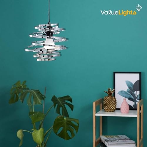 MiniSun | Contemporary Silver Chrome Metal Double Ribbon Spiral Swirl Ceiling Light Shades | Pendant Lights, Home Décor & Improvement Essential | Set of 2 | 30cm Shade Width