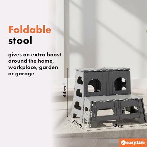 Easylife 2-Step Folding Stool, Stepper, Portable Foot Stool, H44cm x W51cm x D53cm - Fully Guaranteed