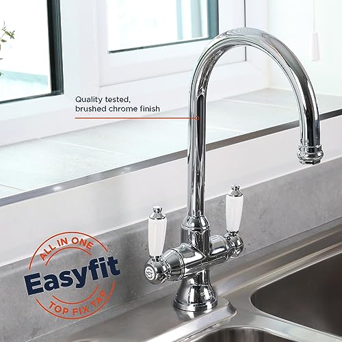 Bristan Renaissance Traditional Kitchen Tap - Swivel spout, Two Lever EasyFit Chrome Kitchen Sink tap, RS SNK EF C