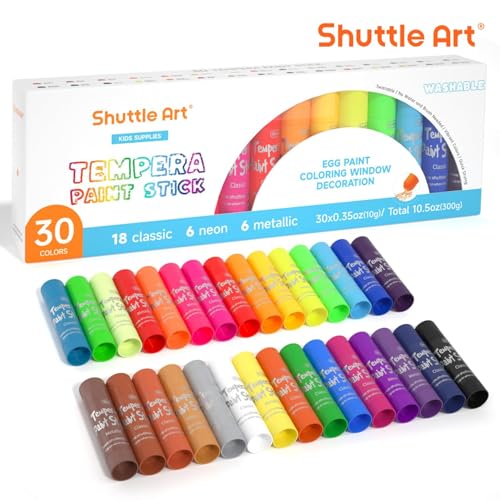 Shuttle Art Tempera Paint Sticks - 30 Solid Colours - Quick Drying - Works Great on Paper, Wood, Glass, Ceramic, Canvas