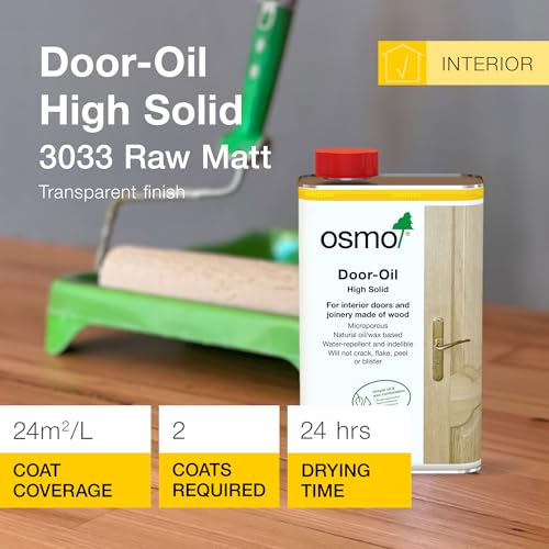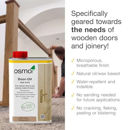 Osmo Door Wood Wax Oil 3033, Raw Matt Finish, 1L - Durable Oil for Doors, Frames and Joinery, Water-Resistant, Wood Treatments - Ideal for Oak, Pine, Spruce, Beech & More