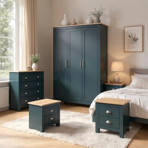 GFW Lancaster 4 Piece Bedroom Set Slate Blue Bedside Cabinet Chest Drawers Wardrobe