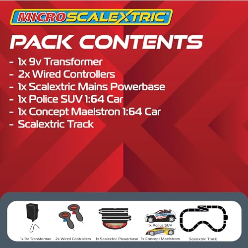 Scalextric Micro Car Race Track Sets for Kids Age 4+ - Law Enforcer Racing Construction Set, Mains Powered Electric Car Track, Slot Cars Kids' Play Vehicles - Mini Racing Toys for Boys