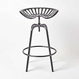 HOMESCAPES Grey Metal Tractor Seat Cast Iron Barstool, 74 cm Tall
