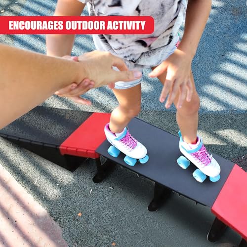The Magic Toy Shop Skate Ramp Set - 6 Assembly Variations, Red & Black, Anti Slip, Modular & T-Lock System, Easy Setup - Outdoor Adventure for Kids with Bikes, Scooters, Skateboards, RC Cars