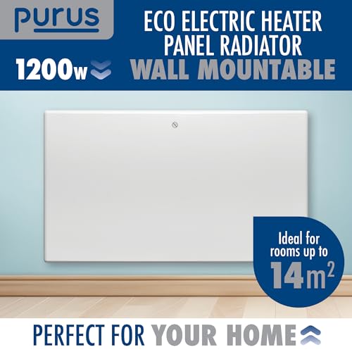 (1200W) Purus Electric Radiator Panel Heater Eco Bathroom Safe Wall Mounted or F