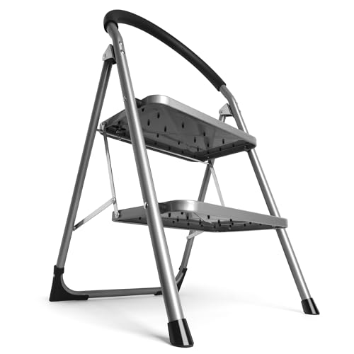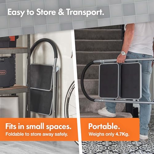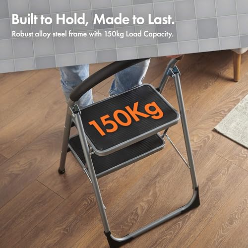 VonHaus Premium 2 Step Ladder with Anti Slip Steps and Feet, Lightweight Folding Stepladder with 150KG Max Capacity, Ideal for Home/Kitchen/Garage Household Ladder