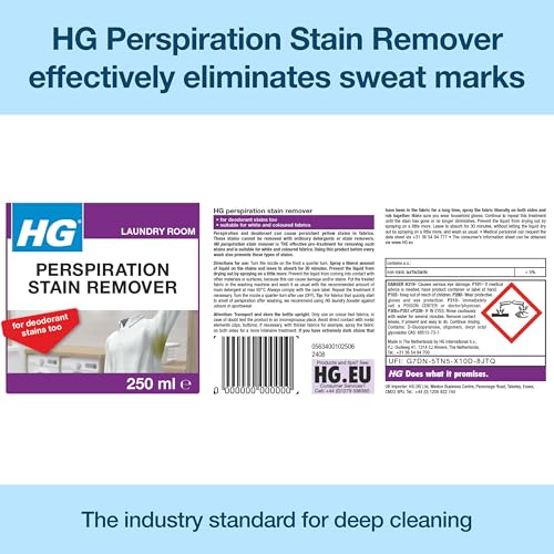 HG Perspiration Stain Remover Spray, Yellow & White Stain Remover for Clothes, Laundry Pre Treatment Fabric Stain Remover & Smell Remover, Antiperspirant & Sweat Mark Remover for Shirts & Tops - 250ml