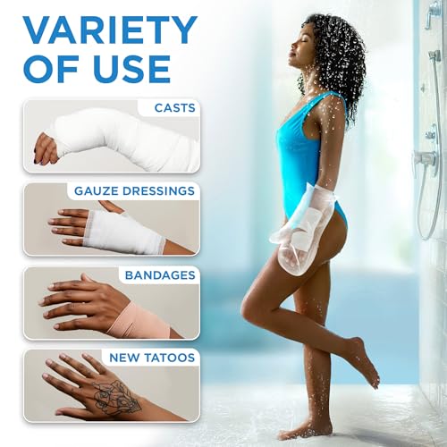 100% Waterproof Arm Cover for Shower - Tight Seal - 3pk Adult Reusable Cast Protectors - Half Arm Bag Sleeves for Wounds Care - After Surgery Plaster Cast Cover for Hand, Wrist, Elbow, Forearm