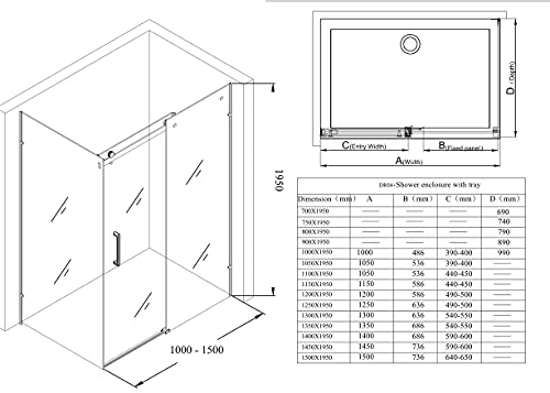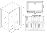 Durovin Bathrooms - l Shape Rectangular frameless Shower Enclosure - Sliding Door - 8mm Safety Clear Glass - 1200 x 750mm