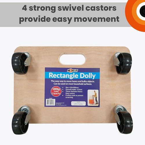 Move-It Platform Dolly With Grip Pads, Heavy-Duty Anti-Slip Transport Roller Trolley For Moving Furniture & Equipment, 180kg Load Capacity, Wooden (45 x 30cm)