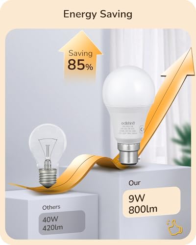 EDISHINE 6 Pack Dimmable Bayonet Light Bulb, Warm White 2700K, 9W LED Bulb,...
