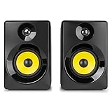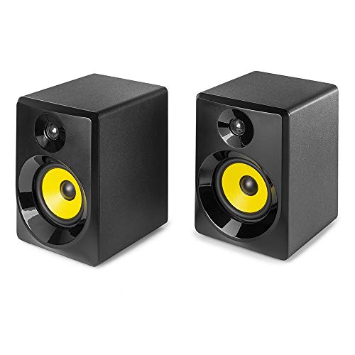 VONYX SMN40B Active Studio Monitor Speakers Pair 4" Professional Multimedia Speakers with Adjustable Floor Stands & Acoustic Isolation Foam Pads for Home DJ Recording Studio Mixing Mastering