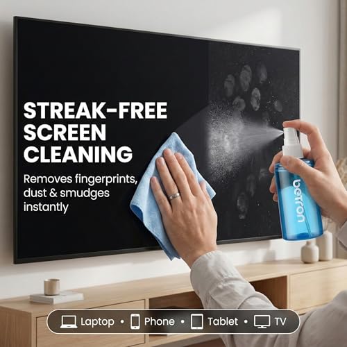 Betron Screen Cleaner Spray for LCD LED OLED TV, Smartphone, iPad, Laptop, Touchscreen, Computer Monitor, Cleaning Kit with Microfiber Wipes and Brush 200ml