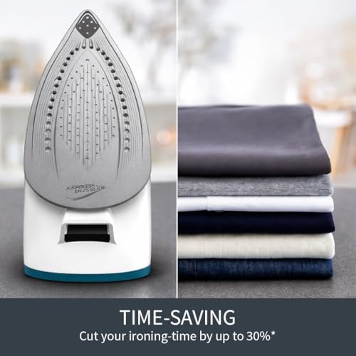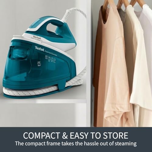 Tefal, Express Essential, Steam Generator Iron, 120g/min Steam Output, Xpress Glide Soleplate, 280 g/min Steam Boost, 5.2-Pump Bars, with Scale Rinsing System, White and Blue, (SV6115)