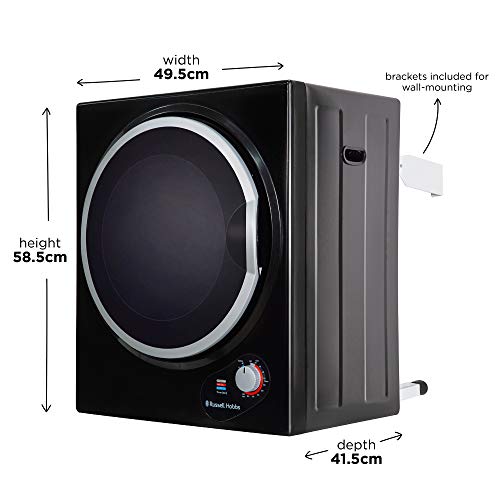 Russell Hobbs RH3VTD800B Black 2.5kg Compact Mini Vented Tumble Dryer, Portable,