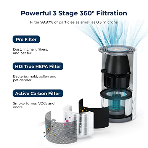 MIKO Air Purifier For Home Large Room Covers Up To 1450 Sqft | H13 True HEPA With PM2.5 Sensor, Auto Function, 4 Fan Speeds- Removes Up to 99.97% of Allergies, Asthma, Smoke, Dust For Home