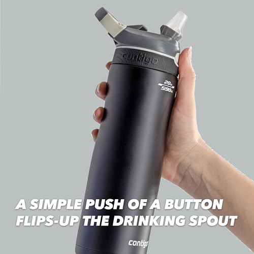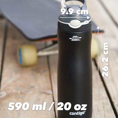 Contigo Ashland Chill Autospout Insulated Water Bottle | Keeps cold for 24 hours | Large Stainless Steel Drinking Bottle | Leakproof Drink-Bottle | Bike, Hiking | 590 ml | Matte Black