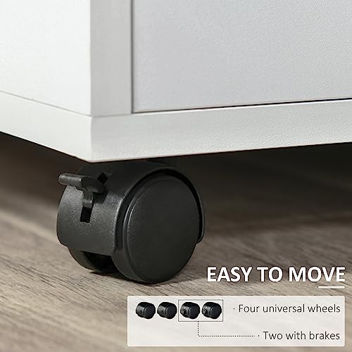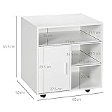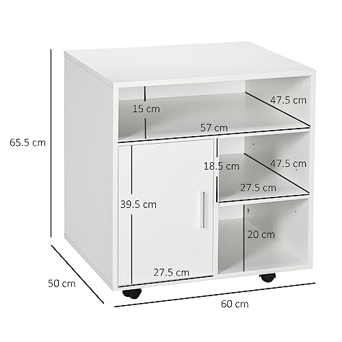 HOMCOM Multi-Storage Printer Stand Unit Office Desk Side Mobile Storage w/Wheels Modern Style 60L x 50W x 65.5H cm - White