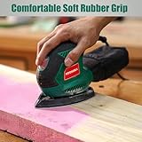 HYCHIKA Sander for Wood 200W, Electric Sander with Dust Collector, 12PCS Sandpapers, 14000RPM Compact Electric Detail Sander Ideal for Tight Space Sanding, Furniture Finishing