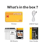 KODAK P210R Mini 2 Retro, Mini Photo Printer 2.1x3.4, 68 Photos Included, Wireless Bluetooth, Compatible With iOS & Android Smartphones, 4PASS Printing Technology, Black