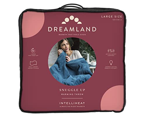 Dreamland Snuggle Up Electric Throw - Teal Blue, 5 Minute Fast Heat Up, Luxury Velvet Plush, 1 Control, 6 Temperature Settings with Timer, Machine Washable and Tumble Dry Safe, 160x120cm
