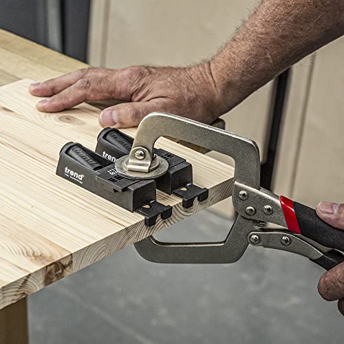 Trend 3 in 1 Pocket Hole Jig Kit with Pocket Hole Jig, HSS Drill Bit & Depth Setting Collar, Square Drive Bit, 50 Screws & Kit Storage Case, PH/JIG/BK